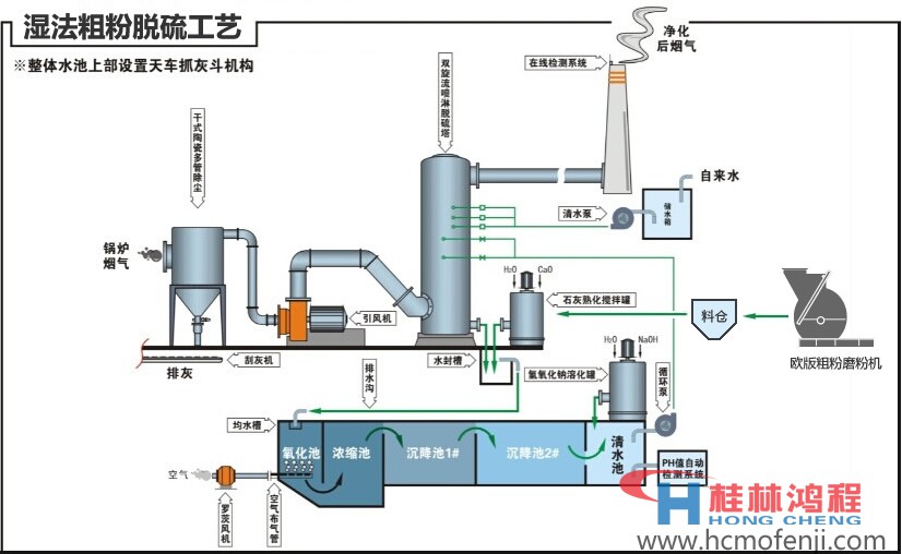桂林鴻程制造脫硫磨粉機(jī)的兩大機(jī)型:HC1700縱擺磨粉機(jī)(歐版磨粉機(jī)、雷蒙磨粉機(jī))濕法脫硫工藝;HLM立式磨粉機(jī)干法脫硫工藝。